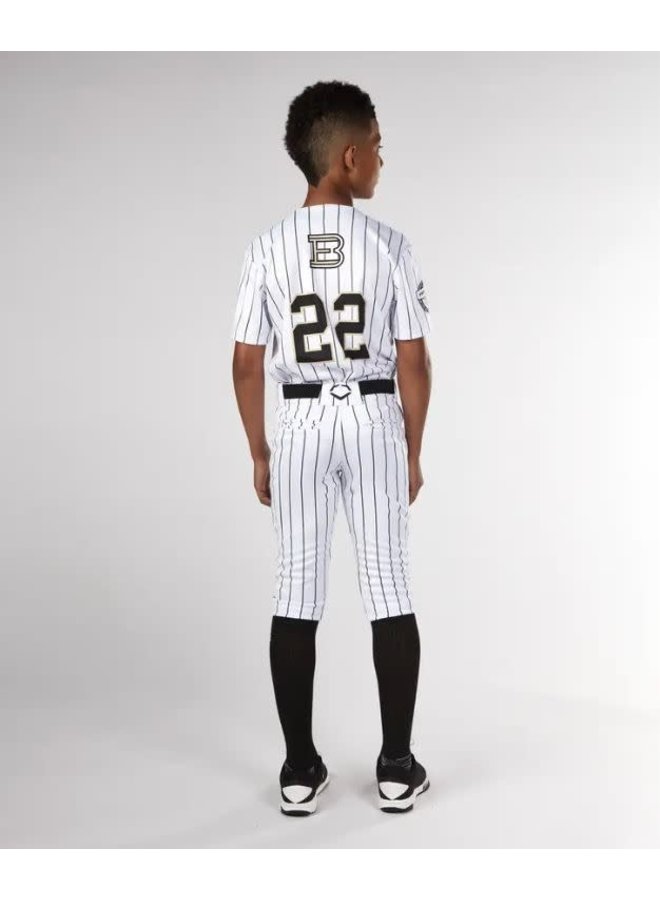 Kick it old school with the EvoShield Salute Pinstripe Knicker. Designed to showcase your stirrups or high socks, these 100% polyester double knit pants feature a pair of set-in back pockets, double-layered knees and a double snap closure in a timeless, pinstriped design that feels as good as it looks.