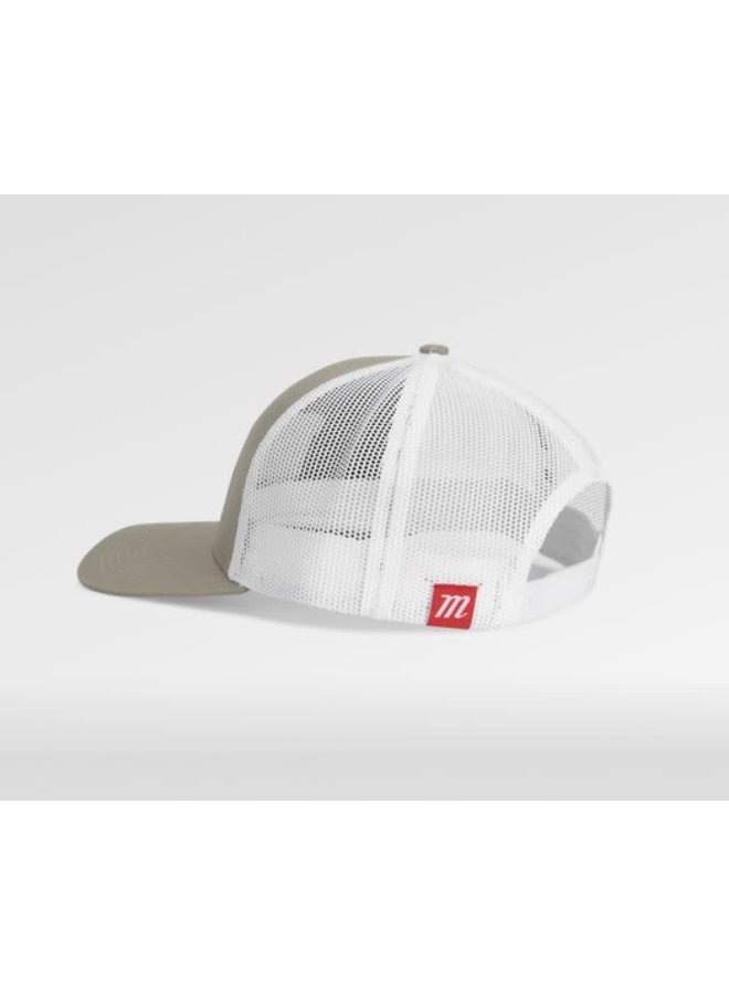 Fabric Cross Patch Trucker Hat Tan/White
