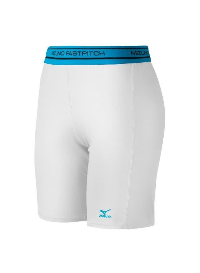 The Mizuno Low Rise Compression Sliding Short is designed to fit comfortably under softball game pants and allows athletes to feel cool during play.