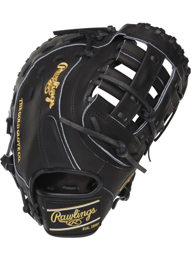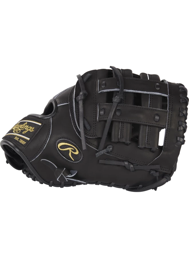 The modified H-Web is a popular pattern among pro first basemen for its light weight and give, which helps you scoop out low throws and maximize your pivot range off the bag. The wide, flat shell construction gives this glove just enough flex to adapt to any catching angle while still providing the stability you need to field groundballs. On top of all that, this mitt comes in striking jet black with gold accents, lending an air of authority to your game at first. This gamer is the perfect first base mitt for those looking for dependability and versatility.