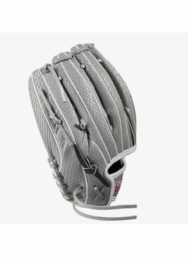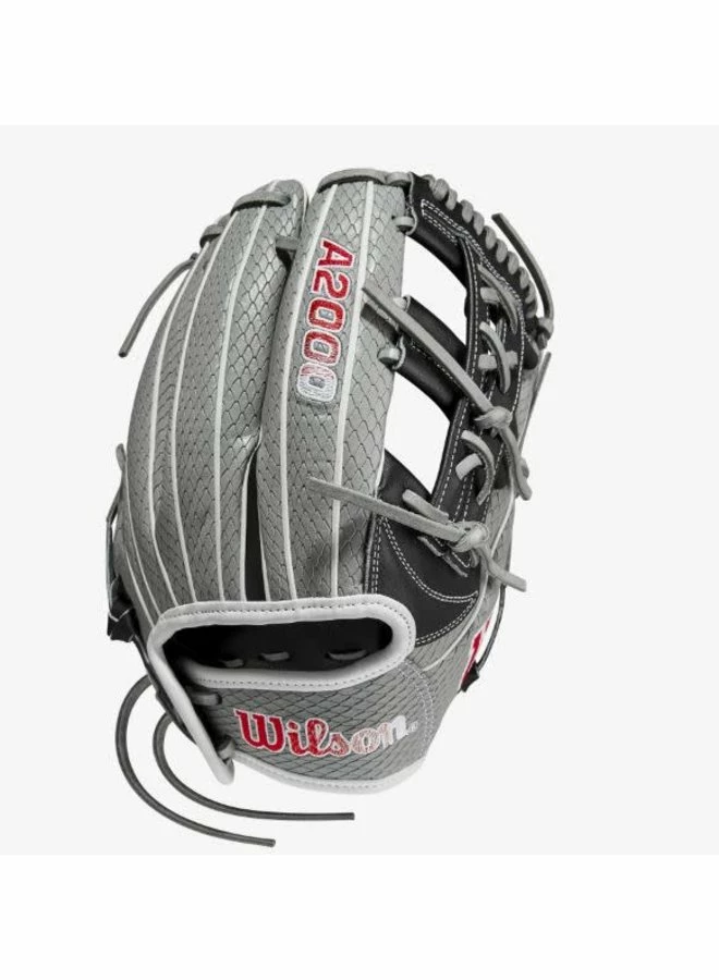 Gap welting between the index and middle fingers stabilize the deep pocket, and the smaller 11.75 in. construction empowers infielders to quickly transfer the ball for outs at any base. Gradient Bold Logos in Red and White bring a modern appearance to the A2000 FP75SS. The Black Pro Stock® leather palm offers the premium feel and durability to handle screaming line drives, and the Grey SuperSnakeSkin™ back reduces weight and repels moisture from rain or wet grass so infielders can play fast.