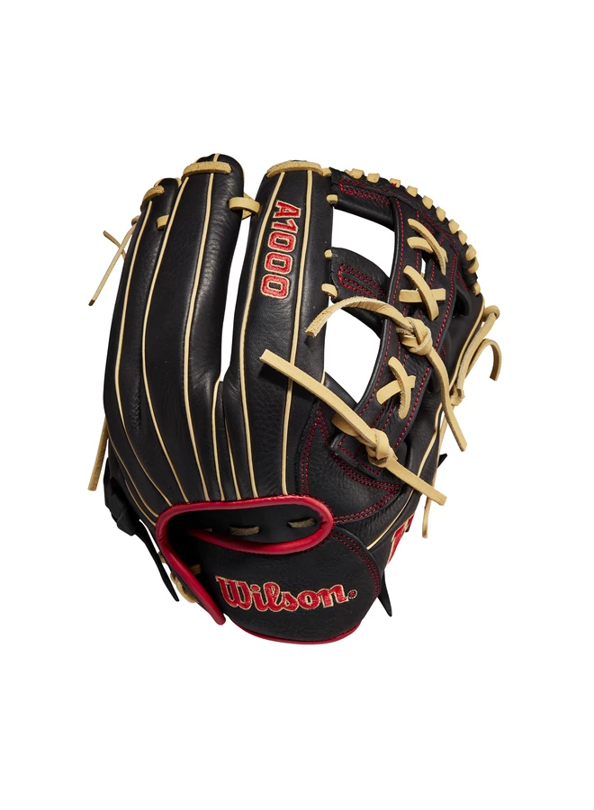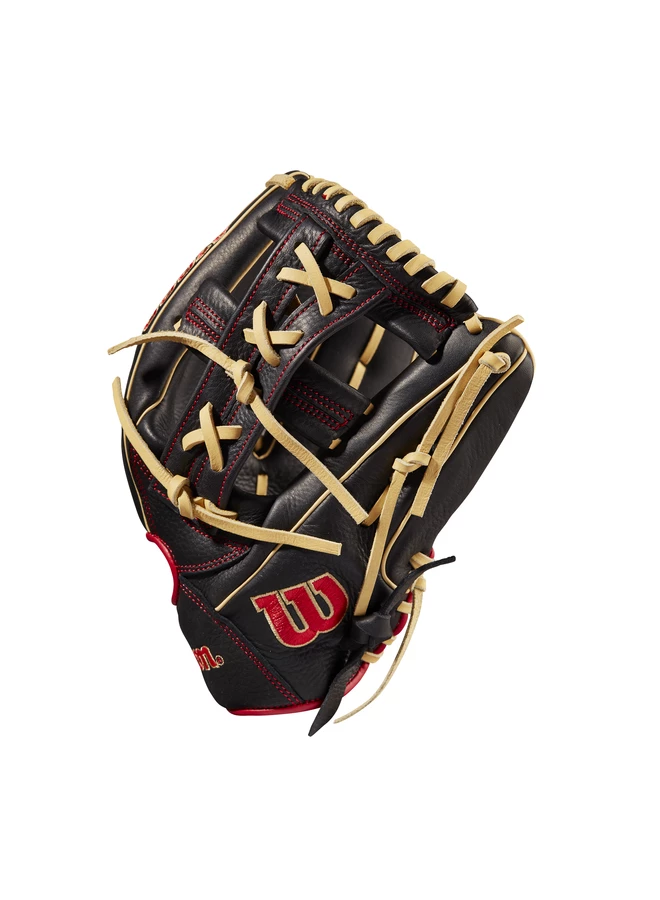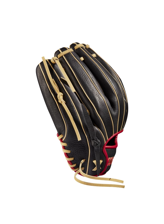 Black Full Grain leather is designed to rob hits on the infield dirt or the outfield grass – great for players who rotate between different positions – and Red binding pairs with Blonde laces to deliver the perfect amount of pop.