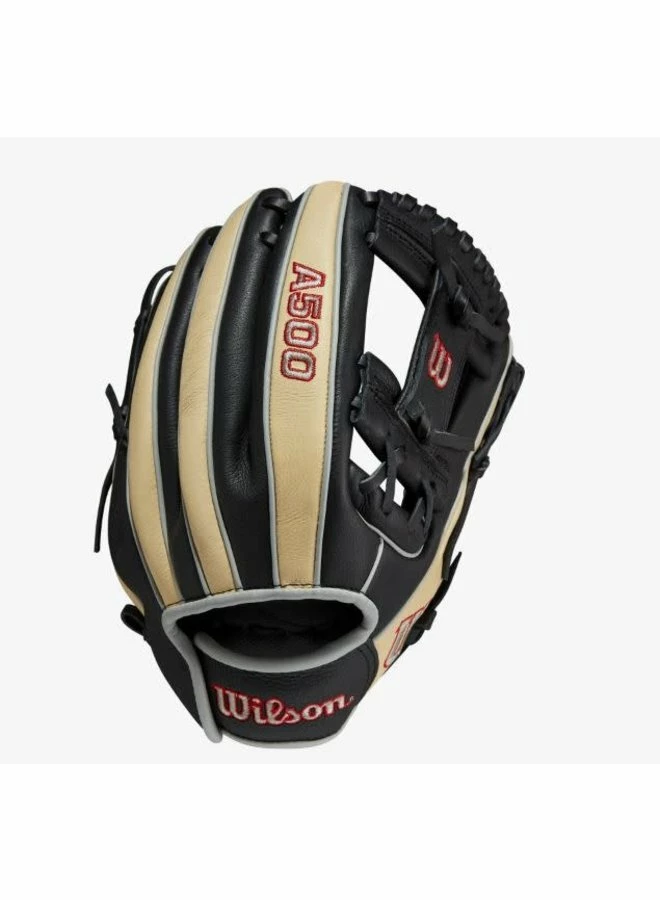 The all-leather construction offers a durable and lightweight feel with Black and Blonde Top Grain leather, binding and dual welting. Engineered for youth players, the A500 boasts a Quick Fit Wrist elastic system that adjusts to hug the wrist, and finger stalls are short and narrow for a steady control of the glove.