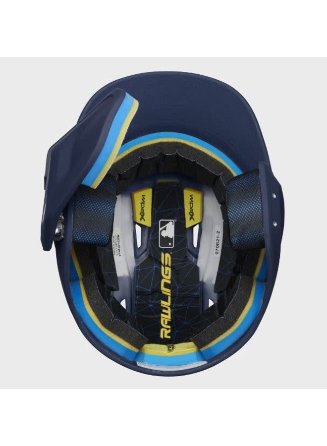 The 2022 Mach Adjust left handed batting helmet was meticulously engineered to give players added coverage for greater confidence at the plate. Its new, adjustable design features 9 different settings from low to high. As a result, you get the perfect blend of performance and visibility, without sacrificing coverage. The 2-piece adapter/flap combination allows you to set the EXT wherever is most comfortable for you, so you can stay focused on each pitch. The guard is easily adjustable too, so you can move it up or down at a moment’s notice. If you bat left handed, this helmet is perfect for you.
