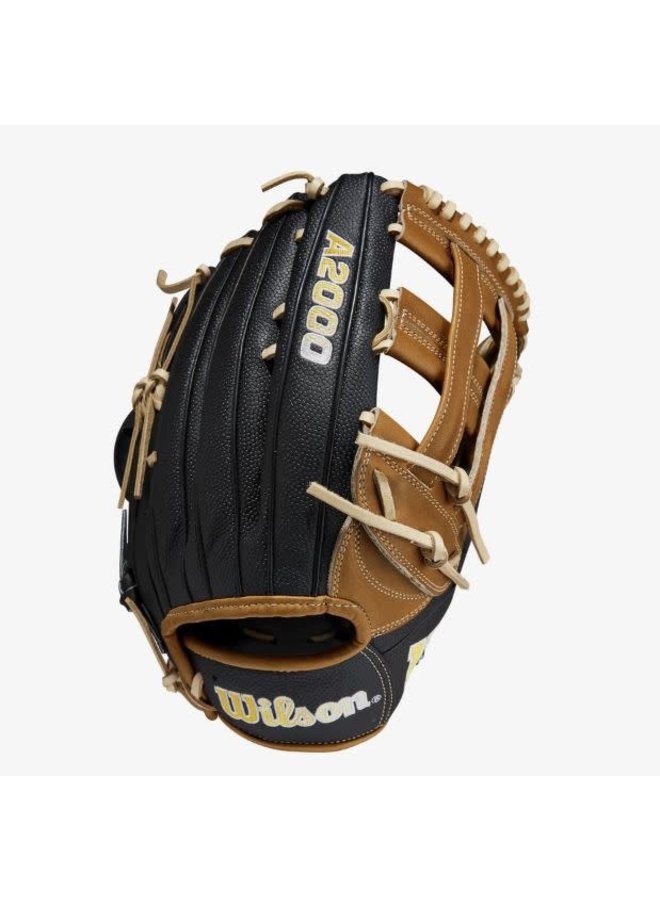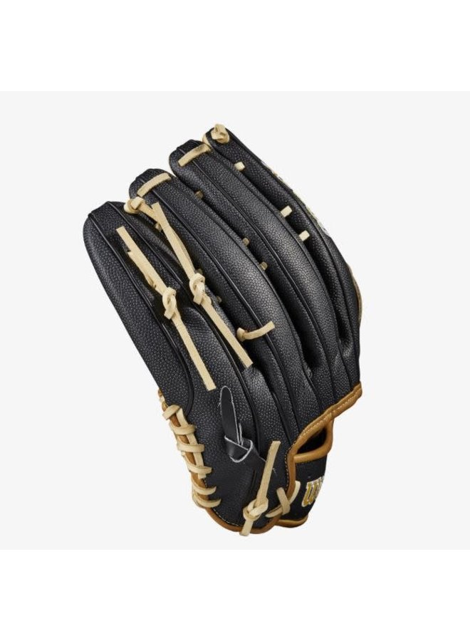 This 12.75” glove model pairs a Saddle Tan Pro Stock® leather palm with Black SuperSkin™, resulting in the ideal combination of size, feel, and durability. Yellow and White Gradient Bold Logos enhance the A2000’s modern look, and lightweight SuperSkin reduces overall glove weight, making it easy to glide across the outfield grass for clutch plays in crucial moments.