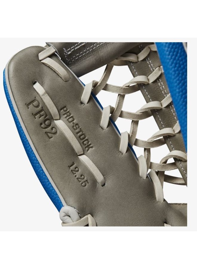 Play with a purpose. The 2023 Autism Speaks A2000® PF92SS 12.25” Outfield Baseball Glove displays Autism Speaks Blue on lightweight and durable SuperSkin™. Crafted with Pedroia Fit, this A2000 PF92SS features shorter finger stalls and a narrow wrist opening to give players with smaller hands more control in the outfield. A Pro-Laced T-Web is designed to snare every batted ball, and multi-colored gradient Bold Logos pair with the exclusive Love the Moment stamp on the pinky to put the finishing touches on this outfield essential.