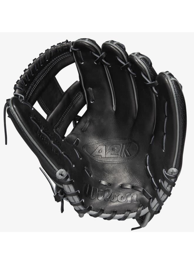 Lead the charge. The 2023 A2K® 1786SS packages game-altering performance in Aso’s signature glove pattern. Designed with an H-Web and a shallow pocket for rapid transfers, the 11.5” A2K 1786SS allows infielders to make the most of their skills on the field. This A2K’s pristine Black Pro Stock® Select leather is reviewed three times to ensure flawlessness, and the Black SuperSkin™ fingers reduce glove weight while improving durability and moisture resistance. Boasting outlined Bold Logos, the A2K 1786SS will keep all eyes on you.