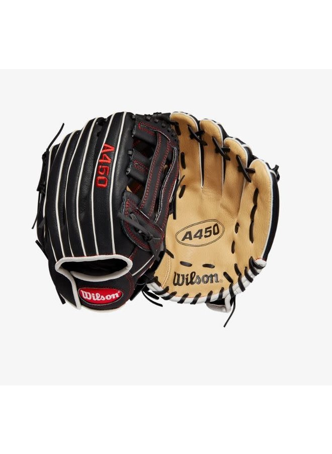 Perfect your infield fundamentals with the 2022 A450® 11” Infield glove. The Blonde and Black design with a sturdy Dual Post Web is lightweight and game ready.