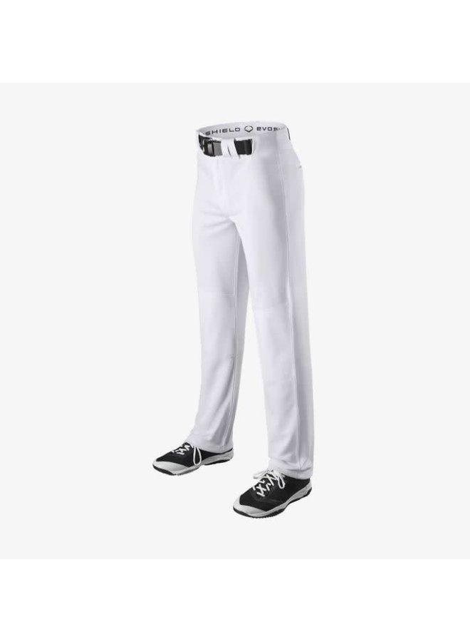 Move without restriction all over the diamond with the EvoShield Salute Open Bottom Pant. Featuring a 100% polyester double knit design, the hemmed open bottom is a classic look for a hard-nosed ballplayer. These pants also have two set-in back pockets, double-layered knees and an EvoShield elastic gripper waistband, giving you everything you need to feel and look great while making plays.